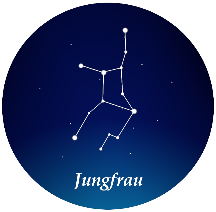 Si no puedes encontrar Virgo en el cielo sin ayuda, a pesar de sus brillantes estrellas, tenemos una pequeña ayuda para ti. Utilizamos la Osa Mayor para orientarnos. Si extendemos su barra de tracción, nos encontramos primero con el Boyero, más concretamente con Arcturus, que brilla en rojo. Si prolongamos aún más esta línea, encontramos finalmente la estrella más brillante de Virgo, que brilla con un blanco azulado.